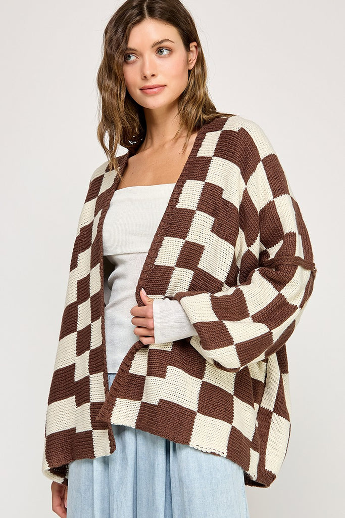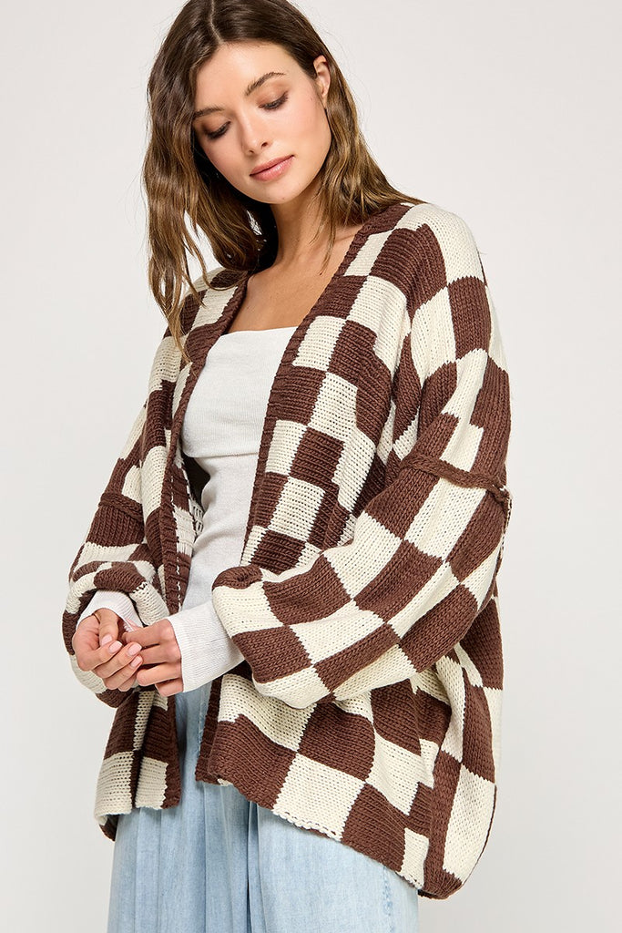 OVERSIZED CHECK DROPPED SHOULDERS CARDIGAN.Fabric Contents100% ACRYLIC